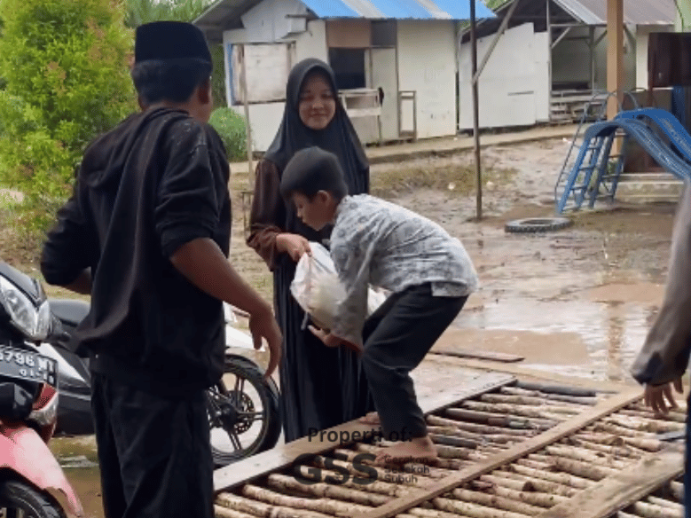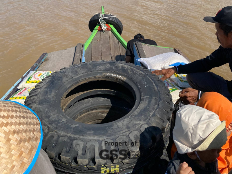 Perjalanan yang jauh tidak menyuruti semangat kami untuk berbagi kebahagiaan bersama para santri yang ada di pedalaman. Meskipun tidak banyak, namun harapan kebaikan teriringi dengan perjalanan kami. Ketika sampai di pelabuhan, kami di sambut dengan gembira oleh para santri. Mereka bersama-sama datang untuk menjemput beras yang datang.